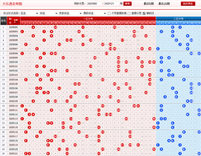前区近10期 -3温区(23、25、30、33)平均出号2-3枚,本期重点关注 25、33(缺项回补概率达80%)。