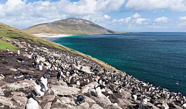 在福克兰群岛,你会发现自己离海洋无比接近。沿着海岸线漫步,欣赏蔚蓝的大海和白色的浪花,在沙滩上晒太阳,享受海风的拂面。当然,你也可以选择乘坐游船出海,寻找海洋生物的踪影。这里的海洋生物种类繁多,包括海豹、海狮和各种海鸟,尤其是企鹅,是福克兰群岛的一大特色。你可以在特定的季节,到特定的地点去看企鹅,看它们嬉戏、觅食,生活在它们自己的世界里。