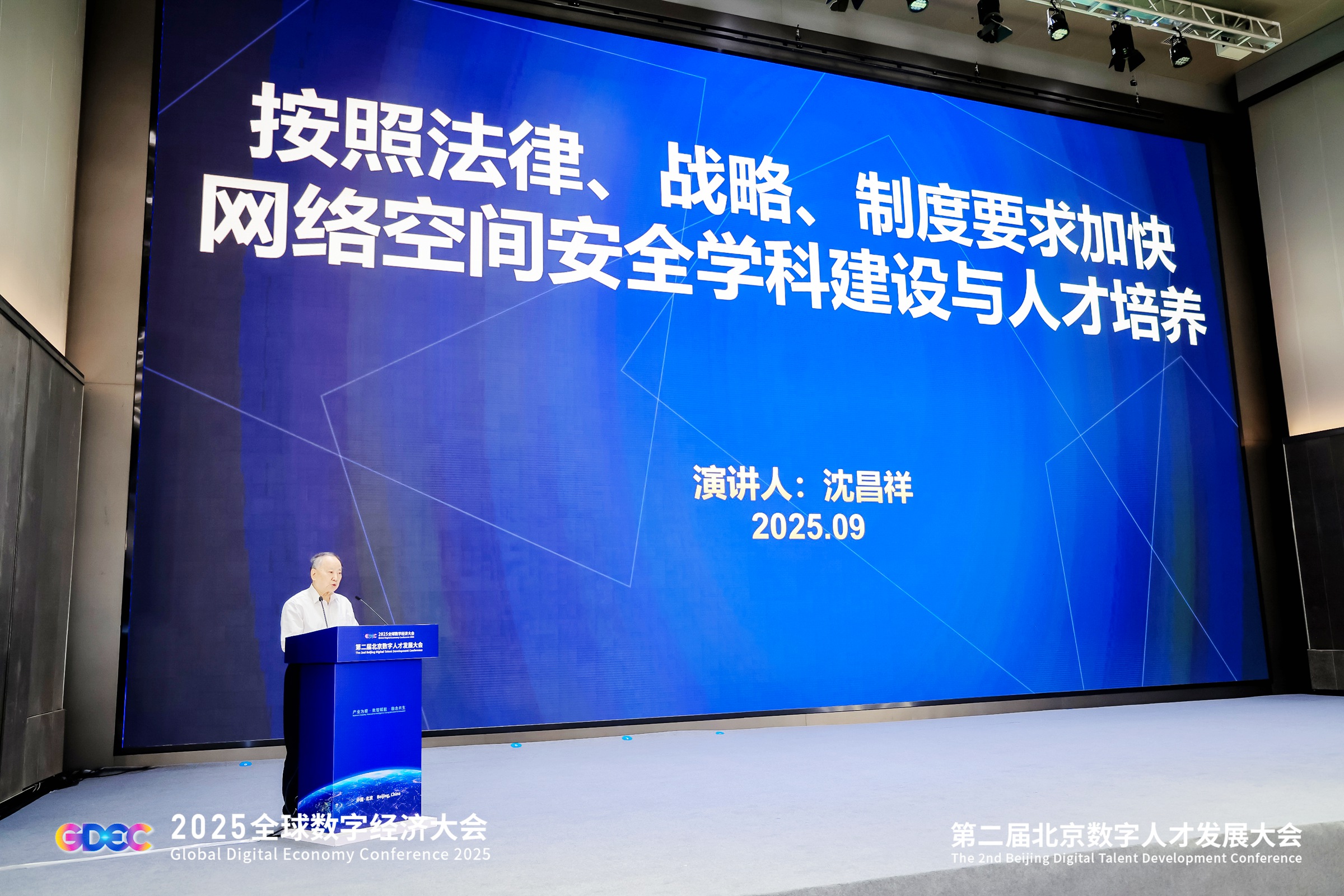 中国工程院院士沈昌祥在大会作主题报告,聚焦网络空间安全领域人才培养。