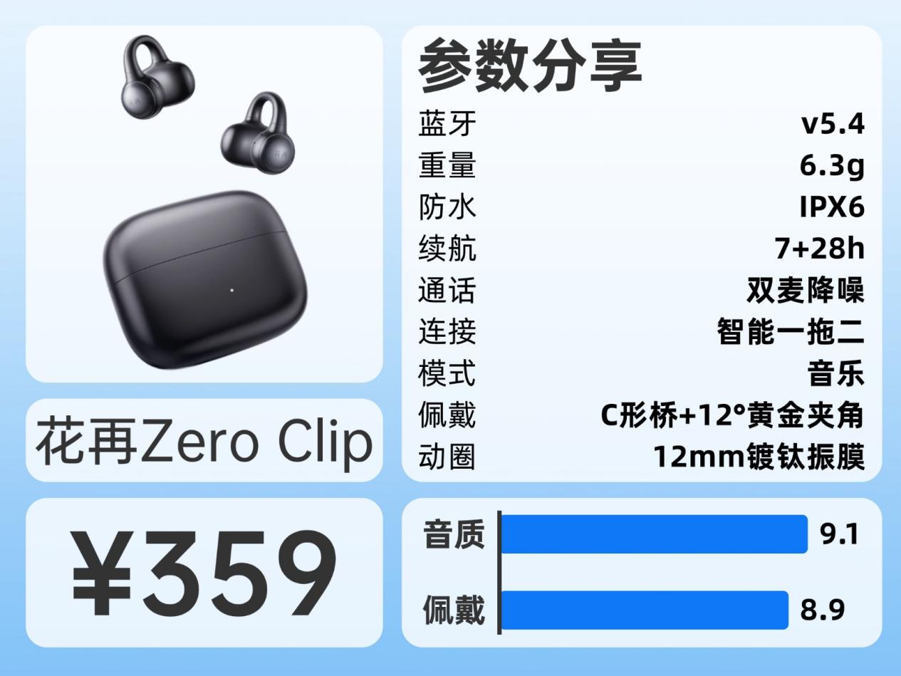 推荐理由:耳夹式耳机公认天花板,适合同生态用户。