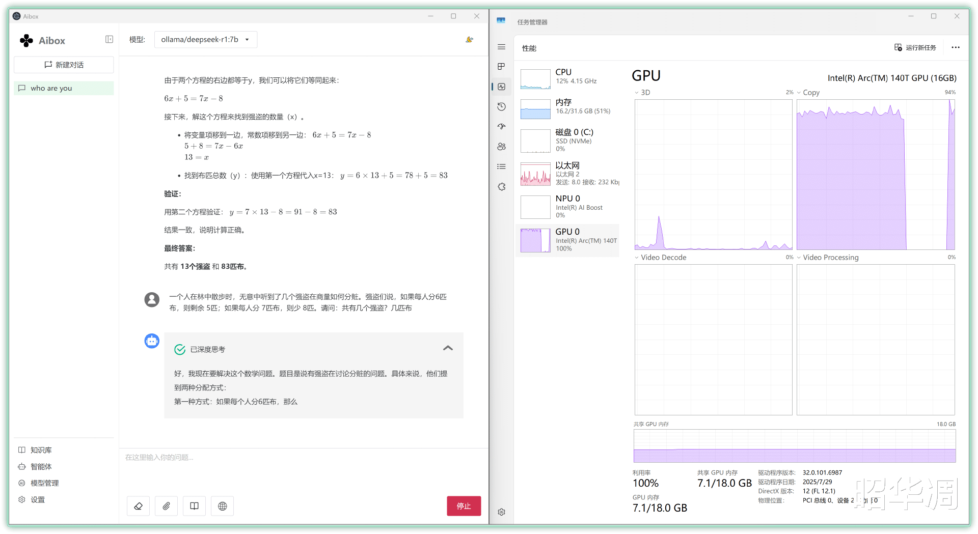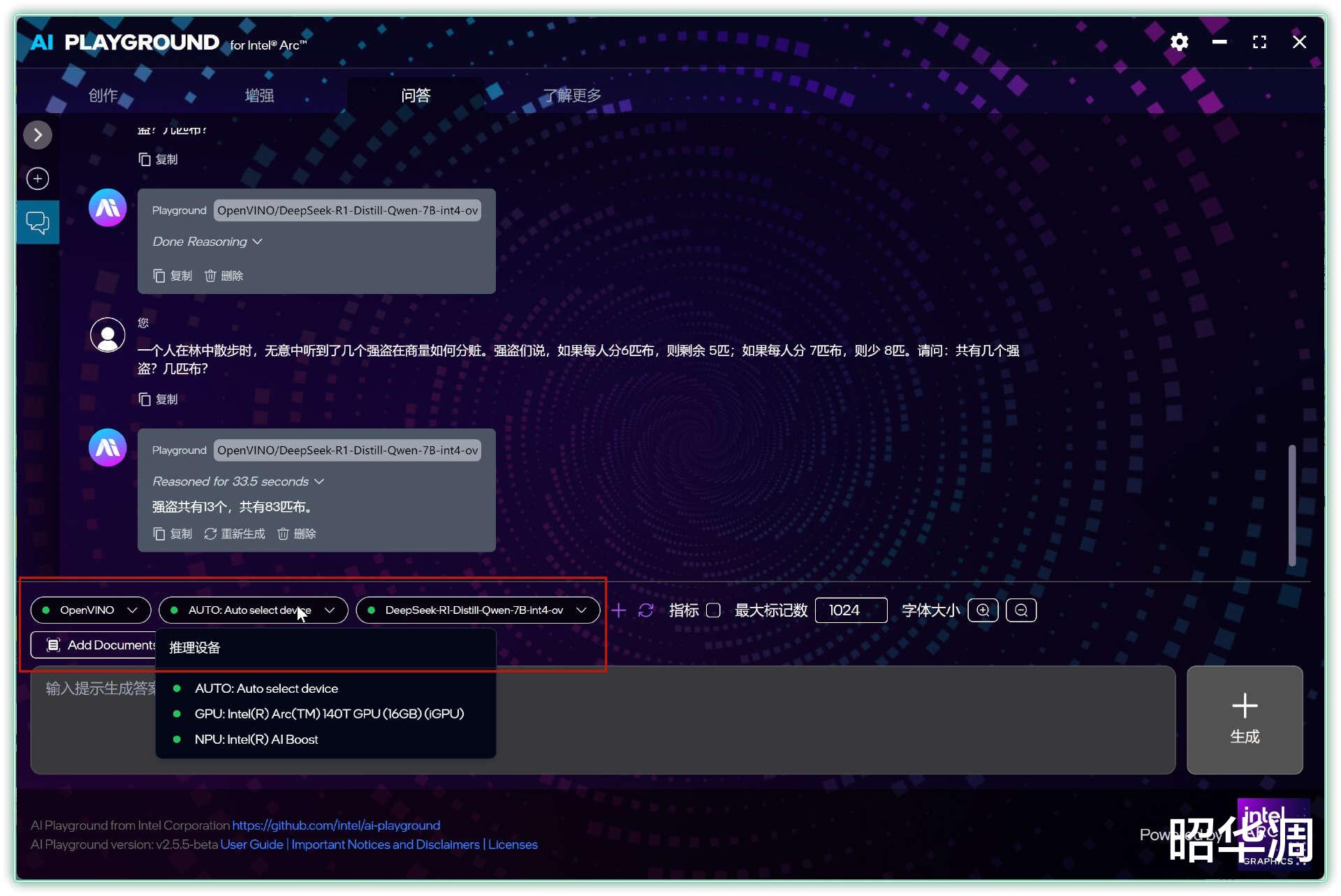 ▼比如用强盗分赃这个经典推理题为例,下方显示的速率达到了15.24 token/s,