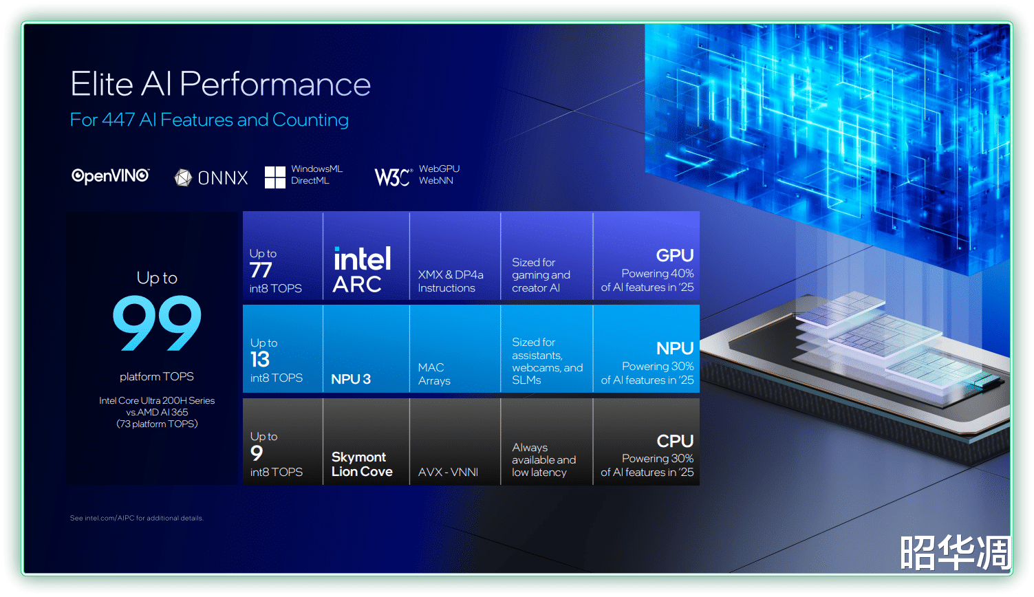 CPU:9 TOPs (轻量级和即时 AI 响应)