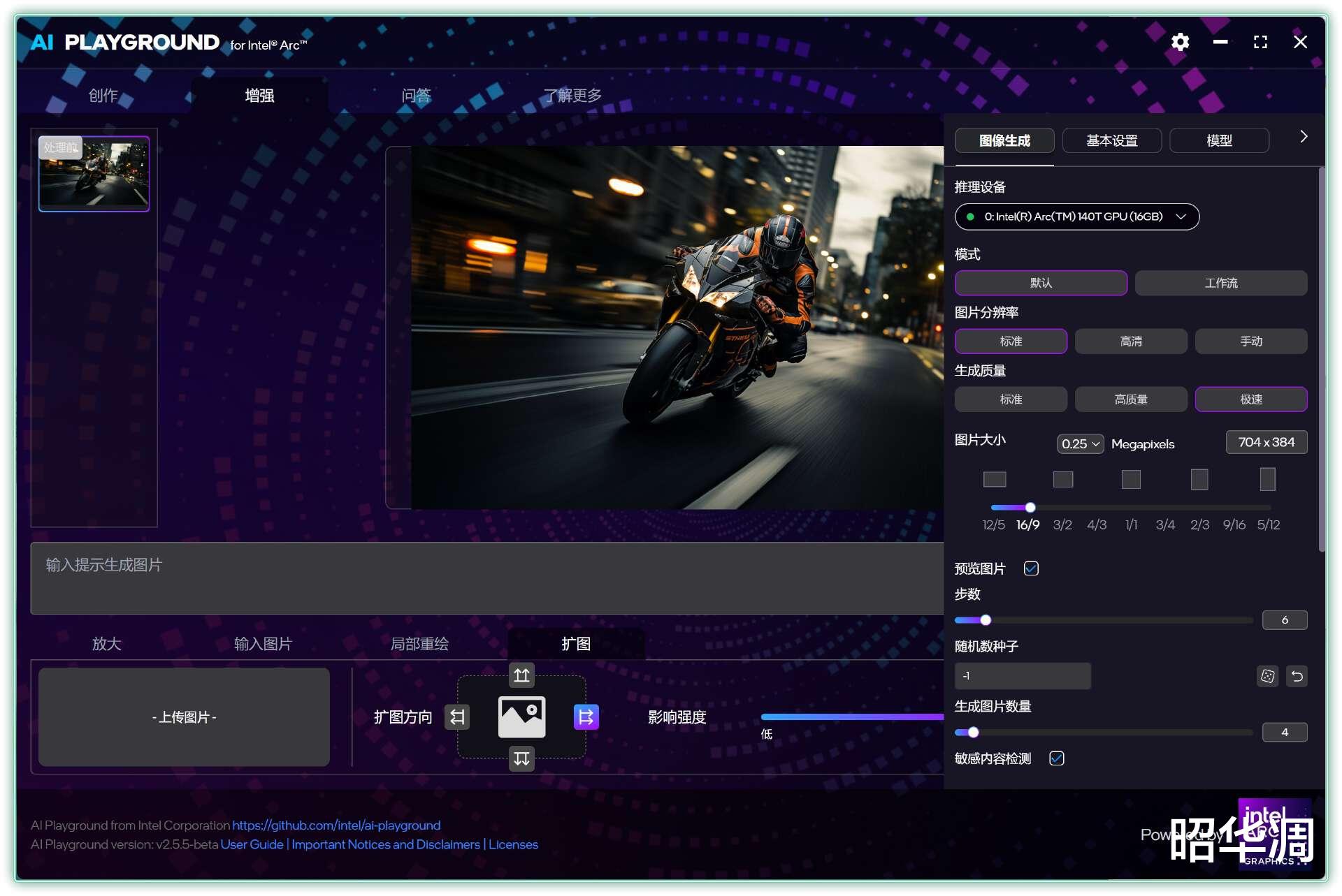 ▼增强模式可以对图片进行重绘,放大以及扩图等操作,这些功能放在第三方软件或者网站都是妥妥的收费项目,用AI Playground 就很划算了,而且速度也很不错。