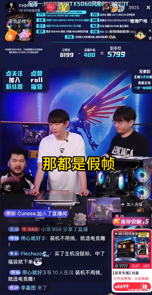 更扎心的是,茄子直接点破“千帧电竞”的营销套路:“这就是恶意营销,脱离实际游戏需求,专门骗你多花钱。”他举例说,有些商家宣传“千帧主机”,价格比普通配置贵一倍,结果玩家买回去发现,游戏里根本感受不到区别,发朋友圈晒个截图倒是挺有面子。但问题是,游戏是拿来玩的,不是拿来晒的,这钱花得冤不冤?