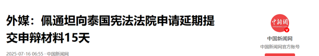 中国新闻网——外媒:佩通坦向泰国宪法法院申请延期提交申辩材料15天——2025-07-16