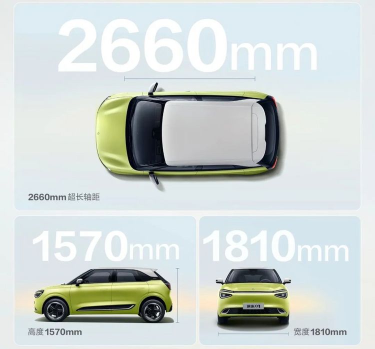 纳米01的车身尺寸为长宽高4030x1810x1570毫米,相比海豚、缤果、海鸥,车身长度仅次于海豚,车身宽度是四款车中最优秀的,2660毫米的轴距也优于缤果和海鸥。