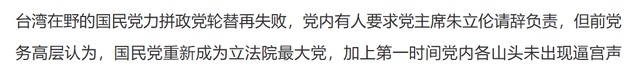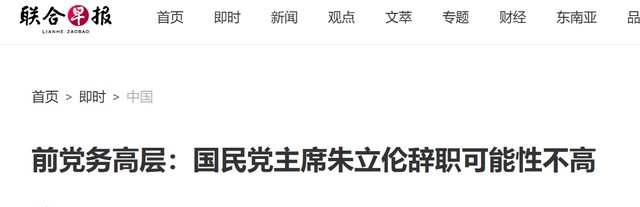 信息来源:联合早报2024-1-14前党务高层:国民党主席朱立伦辞职可能性不高