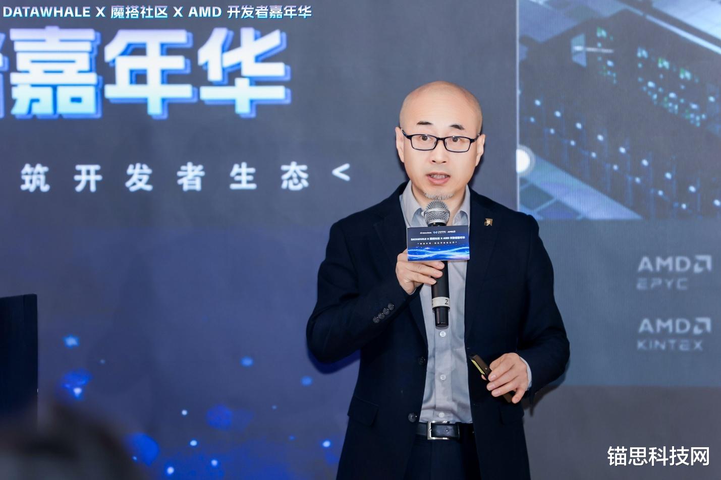 释放AI潜能需要无处不在的AI引擎。在开场演讲中,AMD大中华区市场营销副总裁纪朝晖介绍了AMD领先且全面的产品力和AMD生态合作伙伴基于Mini AI工作站的端侧应用创新。AMD以开源软件栈ROCm为基石赋能AI开发者,在今年的世界互联网大会上,AMD的 ROCm 开源AI软件栈荣获了“领先科技奖”,这份荣誉不仅仅是对于ROCm开源软件栈的认可,更是对开源开放、共享协作精神的肯定。此次AMD联合Datewhale与魔搭社区,希望为AI开发者提供开放创新的学习平台,以及交流和成长的空间。