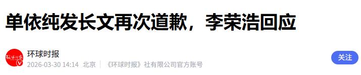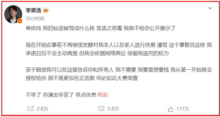 3月29日上午,李荣浩突然连发数条动态,公开喊话单依纯。