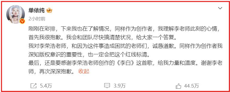 面对指控,单依纯接连两次道歉。