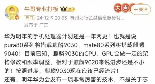 但也不一定,华为总是给消费者很多意外之喜,可能pura80标准版用9020,pro版本以上用9030,能不能用上更强的处理器,还得看新款麒麟芯片的进度。