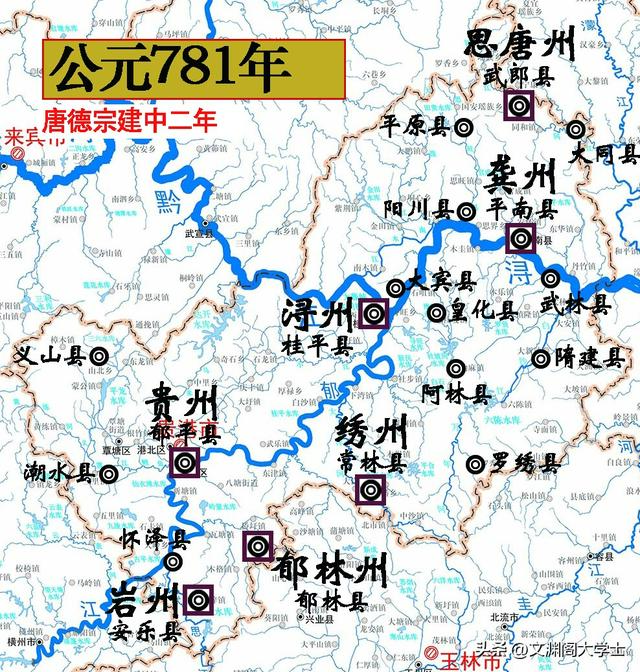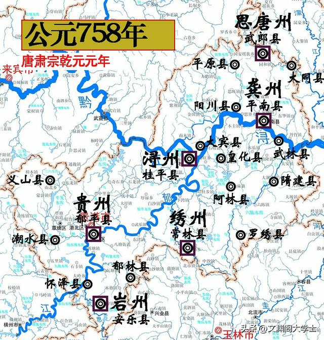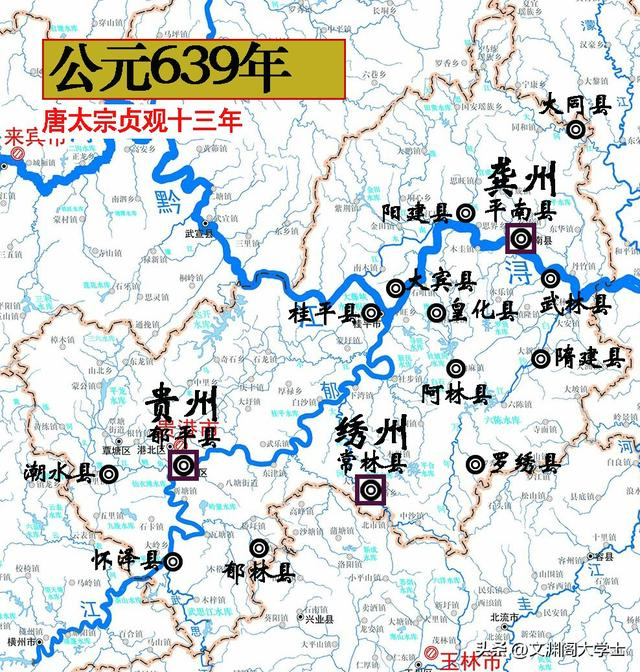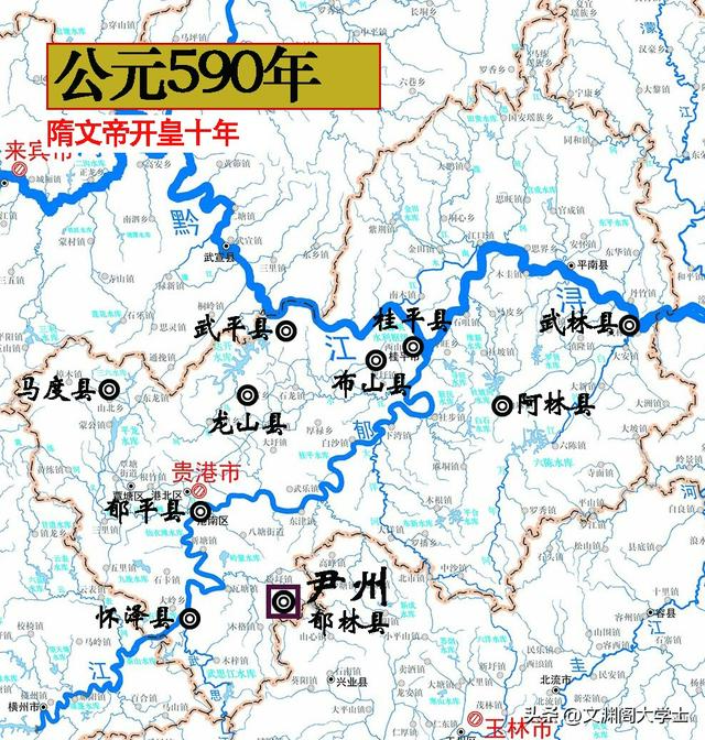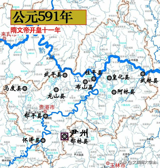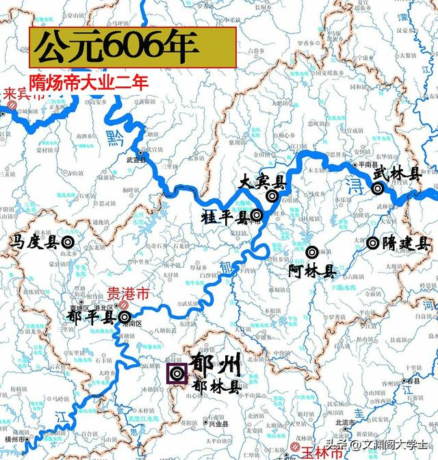 贵州在今贵港市境内领郁平、郁林、怀泽、潮水共四县,州治郁平县。