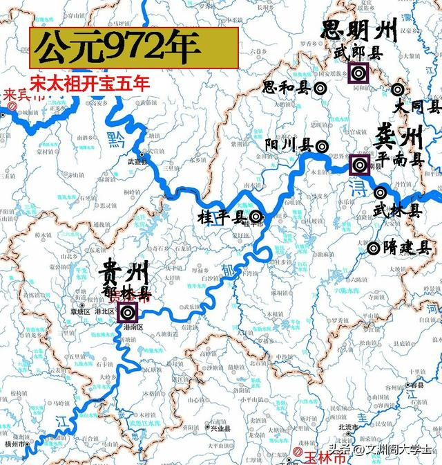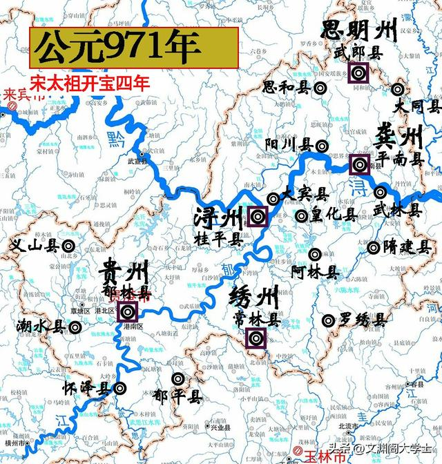 宋元时期971年,北宋统一岭南。改思唐州曰思明州,改贵州郁平县曰郁林县,改郁林州郁林县曰郁平县。