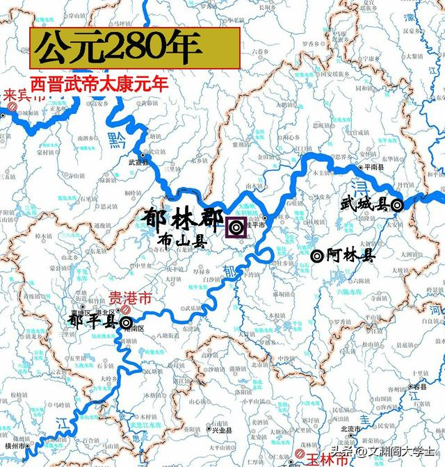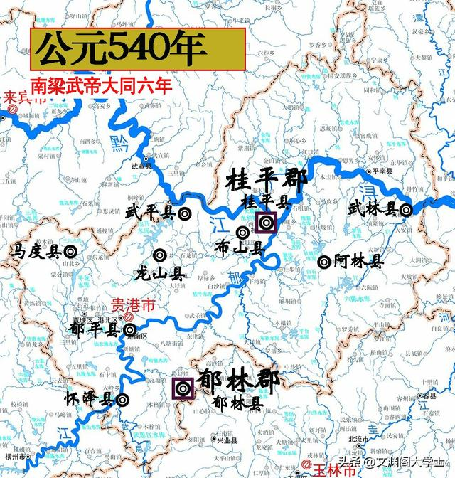 郁林郡在今贵港市境内领郁林、桂平、阿林、郁平、马度共五县,郡治郁林县。