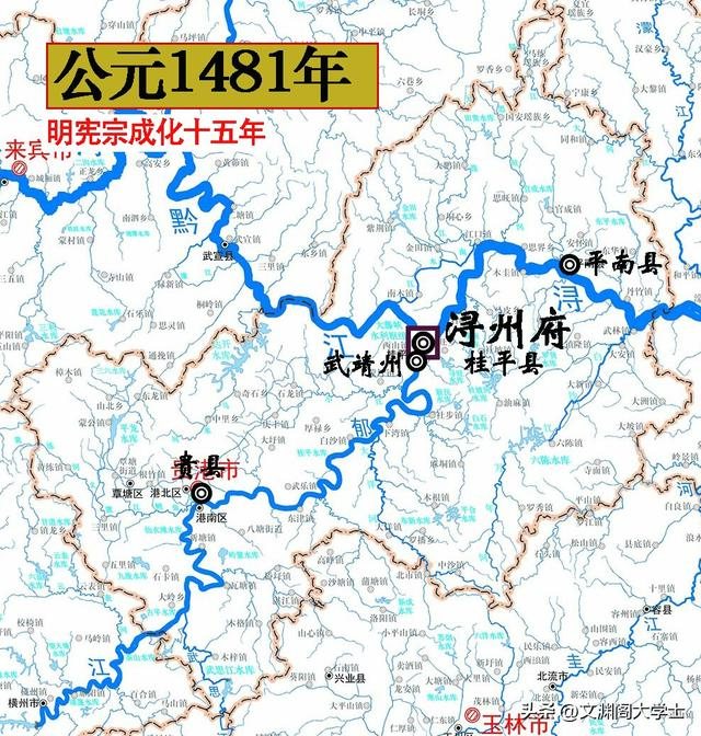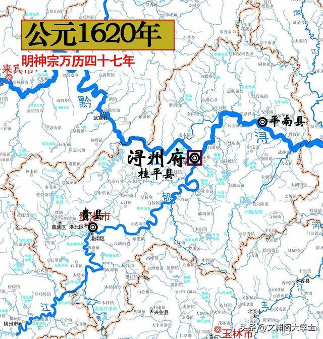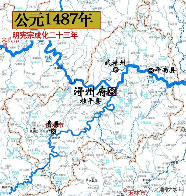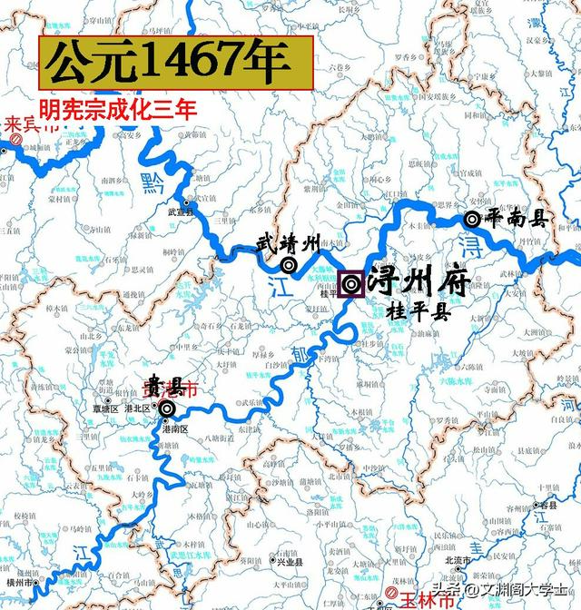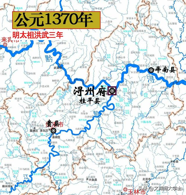 1370年,改浔州路曰浔州府,府治桂平县。贵州降为贵县。