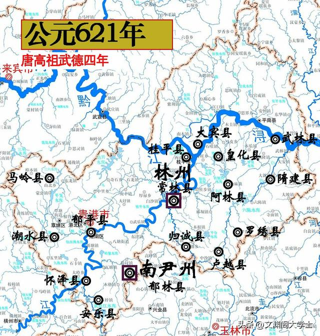 朝时期621年,唐朝统一岭南。废郁林郡,于郁林郡旧地分置南尹州、林州、郁州。改永平郡为藤州。