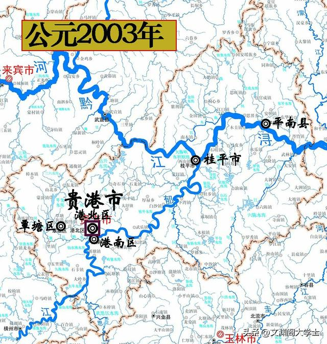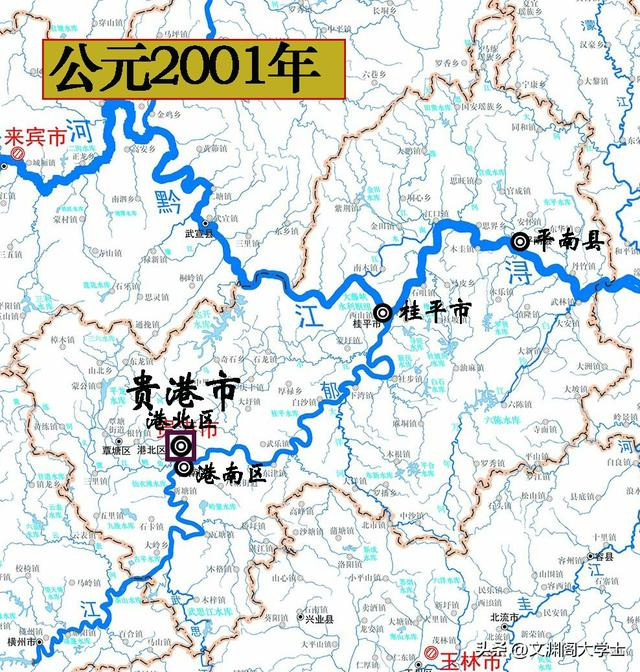 1996年,成立地级贵港市,下辖港北区、港南区、平南县,代管桂平市。