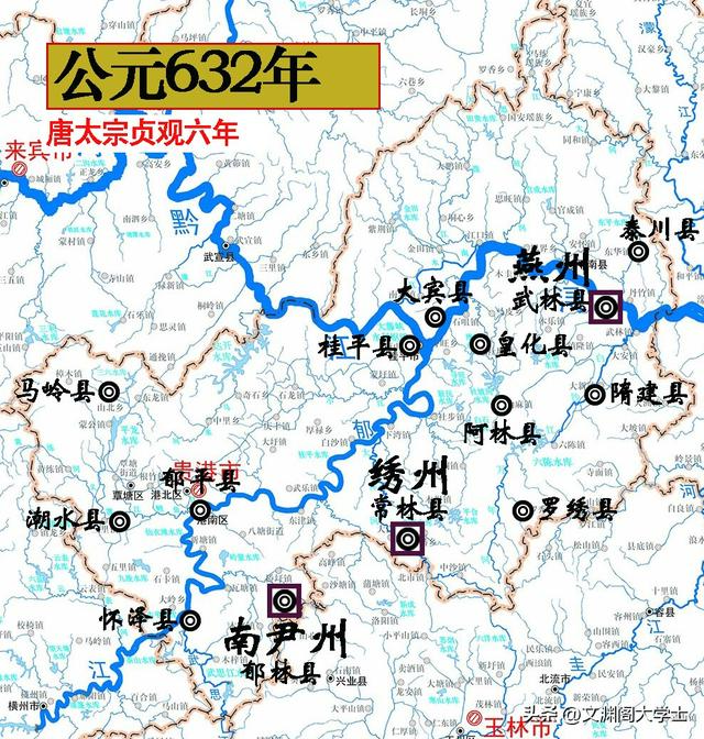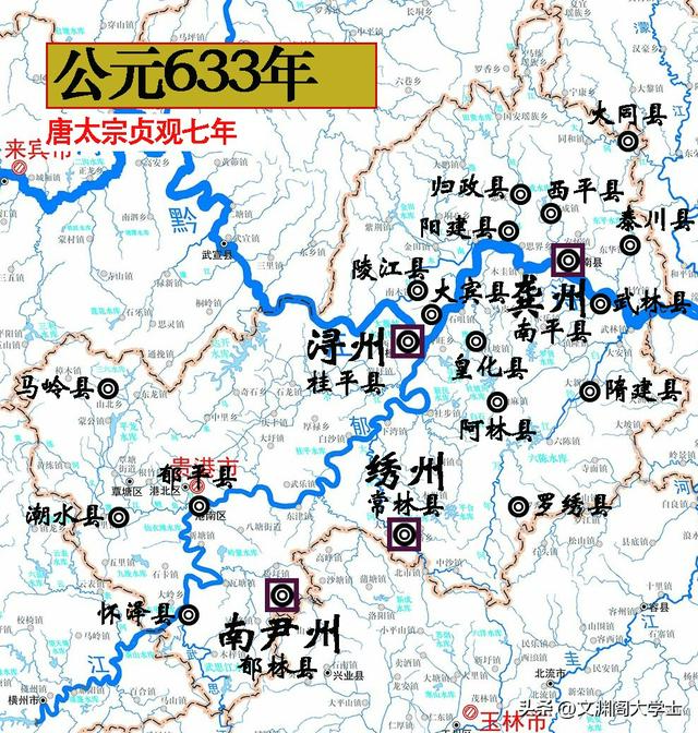 633年,分燕州地为浔州、龚州。析大宾县地置陵江县。又新置阳建县、归政县、大同县。析泰川县地置西平县、南平县。绣州皇化县改隶浔州。