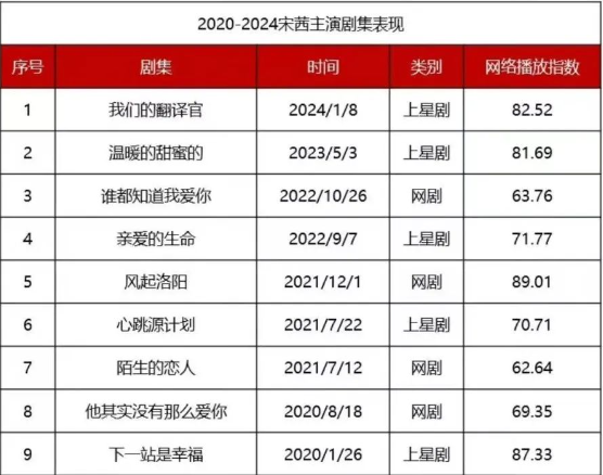 在宋茜的努力下,她精心选择并塑造的这些角色,突破了观众的年龄圈层:从轻熟段,到熟女段,再到高知女性观众,差异化的受众画像,让宋茜的粉丝遍布全网!