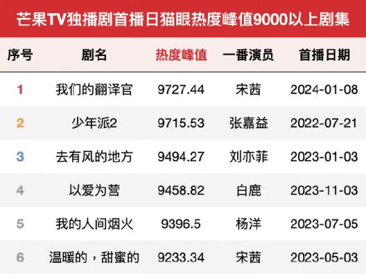 在网播方面,芒果TV首日猫眼峰值9727.44!破纪录地第一!