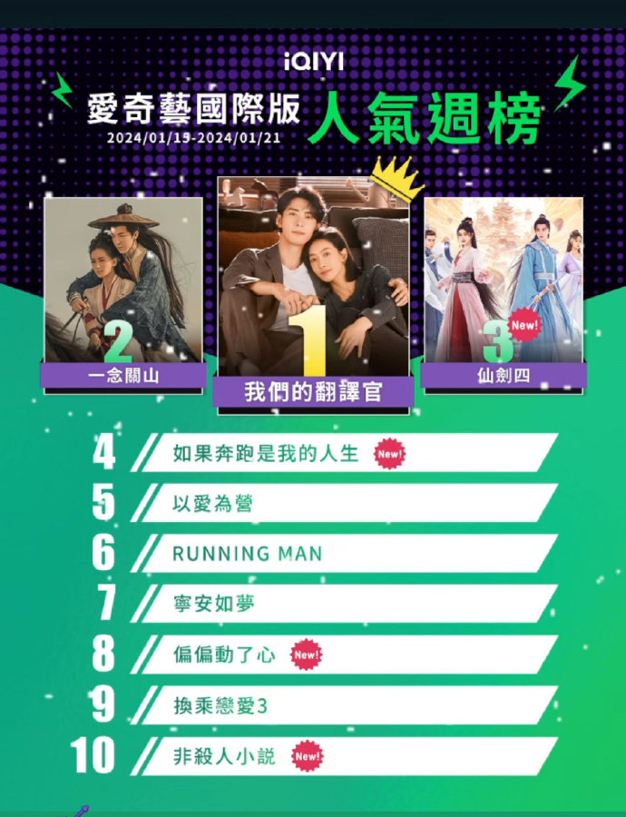 与此同时,还登上了爱奇艺国际版人气周榜冠军!