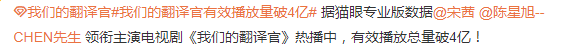 截至现在,《我们的翻译官》有效播放量已经破4亿!