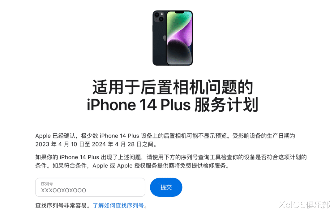 如果你不知道自己的 iPhone14 Plus 是否符合条件,可以直接去苹果官网的服务计划中输入序列号查看。