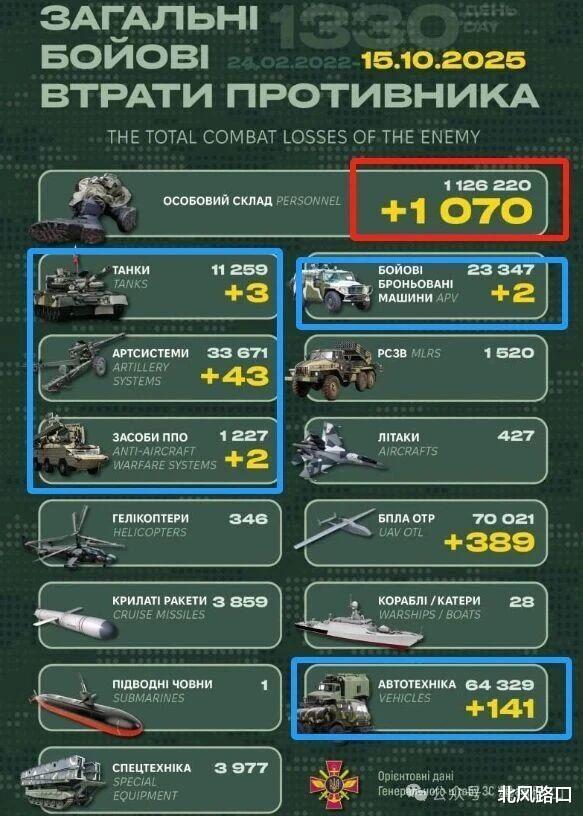 6、【英国情报部门披露俄军2025年损失情况】10月14日,英国国防情报局称,自2025年伊始,俄军已有30多万士兵阵亡和受伤。