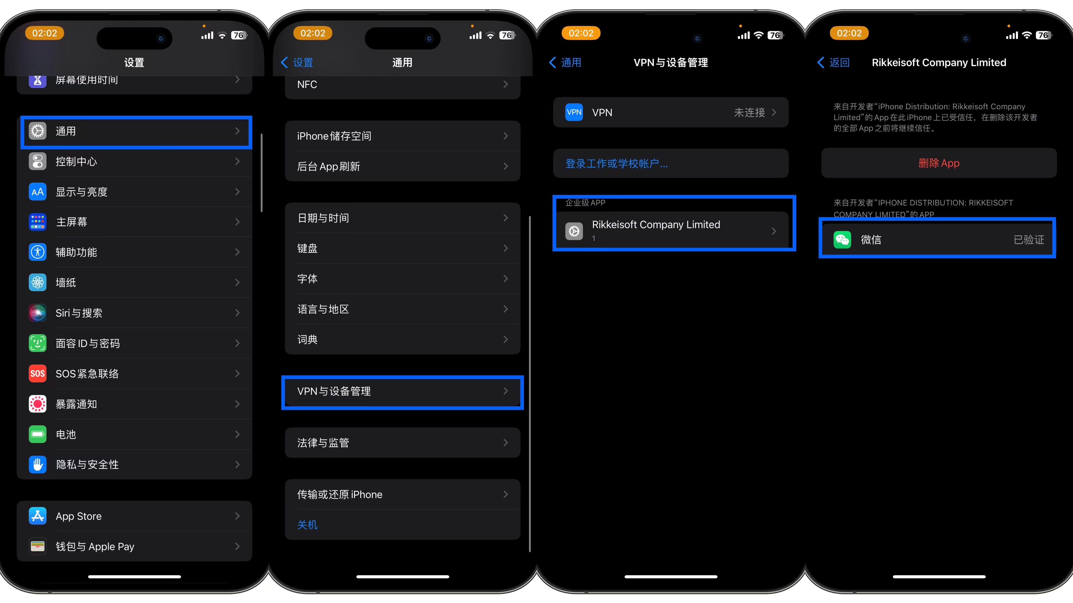 第三步,打开手机设置,进入通用,再找到设备管理,点击对应的开发者证书,并信任。完成这一步后,您就可以安心地打开微信分身了!