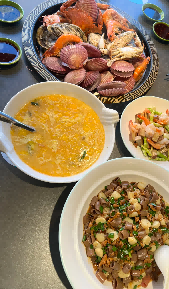 一、巧克力渔家来威海想吃海鲜的直接冲巧克力渔家!!他们家的海鲜个头又大又新鲜,山东菜做的也地道,价格也实惠,必点海鲜蒸汽锅、海肠捞饭!菜都非常的鲜、爽口~来威海巧克力渔家属于是必打卡美食海鲜店!