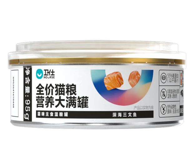 高性价比主食罐头红黑榜测评:卫仕是上海宠幸自主创立的宠物健康食品品牌,秉承“让爱宠相伴的幸福更长久”的品牌使命,研发了犬猫营养品系列、主粮系列、零食系列等多品类产品线。卫仕全价猫粮营养大满罐有牛肉味、鸡肉味、三文鱼味3种选择,其中鸡肉罐是单一肉源以纯肉为主要原料,添加了内脏、骨骼以及矿物微量元素;其他两个口味的配方设计与鸡肉味相似,只是由多种肉源组合且肉汤占比较多。净含量为95 g,罐身设计简洁大方。