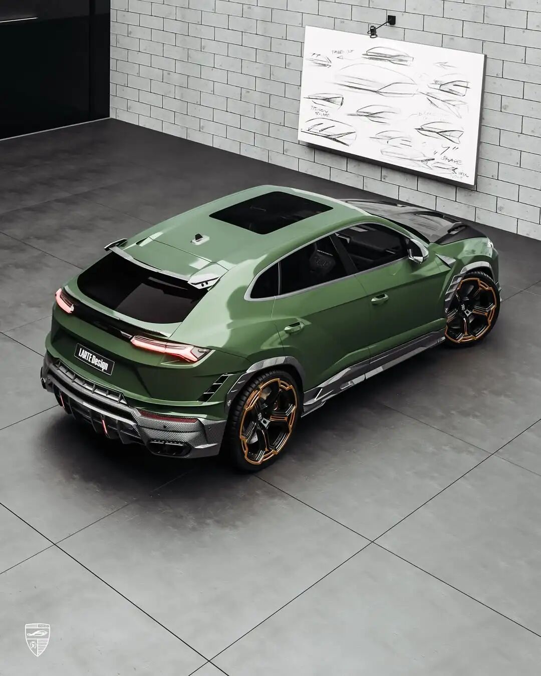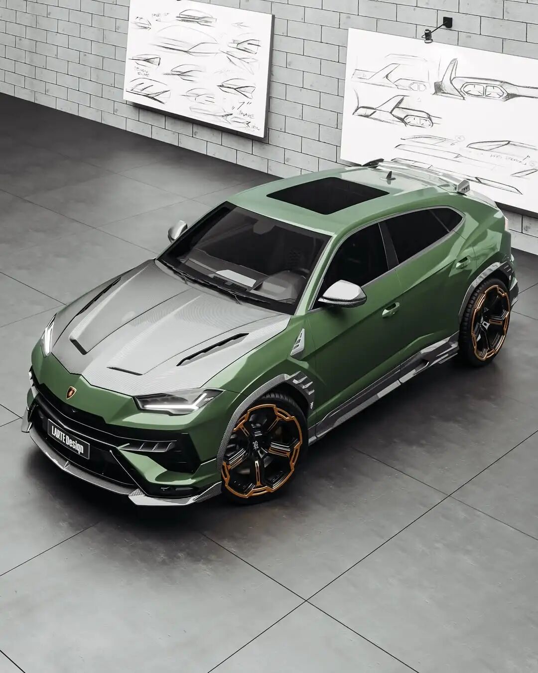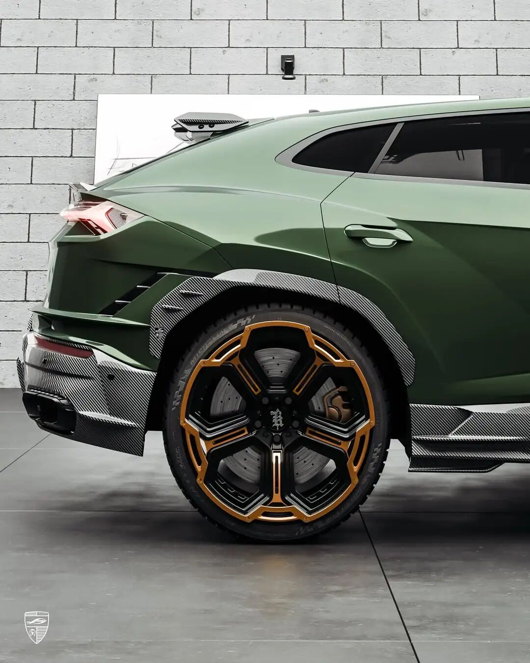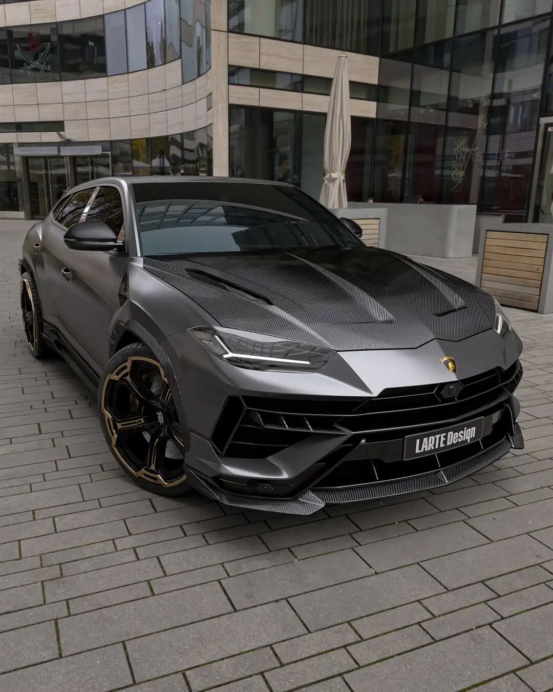 这款Urus还配备了Larte标志性的后保险杠。新设计融入大量碳纤维元素,并搭载新款扩散器。保险杠还集成有额外刹车灯,这是该品牌的标志性设计之一。发动机盖换成更具攻击性的碳纤维款式,配备巨型通风口,前保险杠造型锋利如刀,彻底改变了车头面貌。