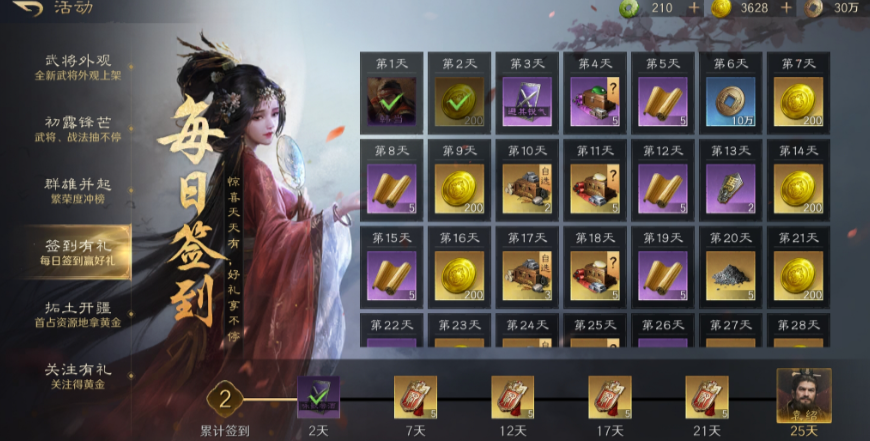 游戏里的资源获取很稳定。通过每日任务和签到,大家可以不断补充资源。累计签到还能送橙将貂蝉,貂蝉的技能在战斗中能起到关键作用。很多玩家说,这种稳定的资源获取方式,让他们玩起来很踏实,不用担心资源不够用。