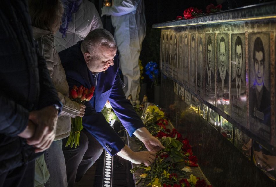 所以这一夜的画面是这样的:一边在基辅广场摆放40朵白色康乃馨,纪念40年前因辐射离世的人;一边在第聂伯罗的居民楼下抢救刚被炸飞的人。蜡烛和导弹,同时点亮了夜空。