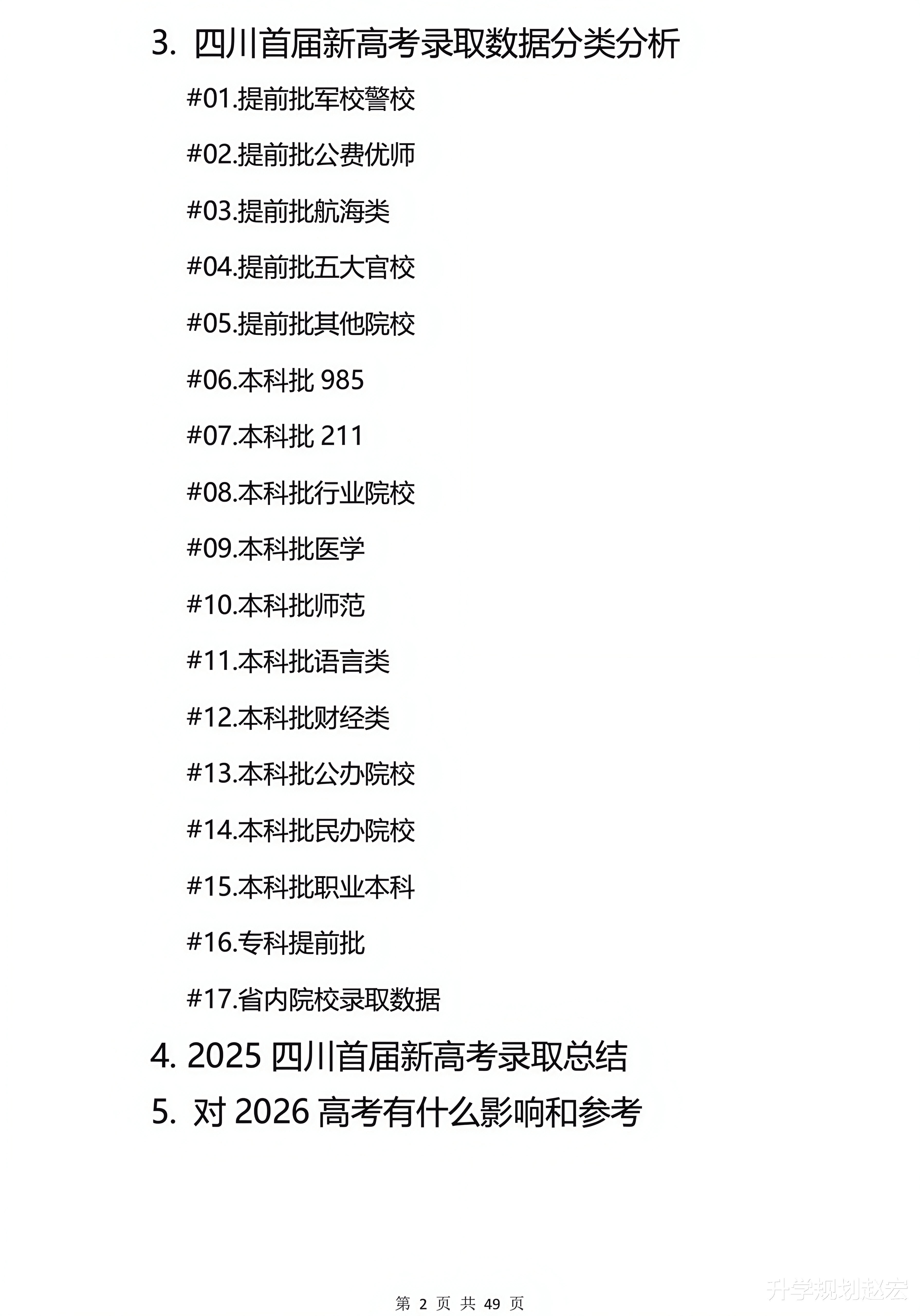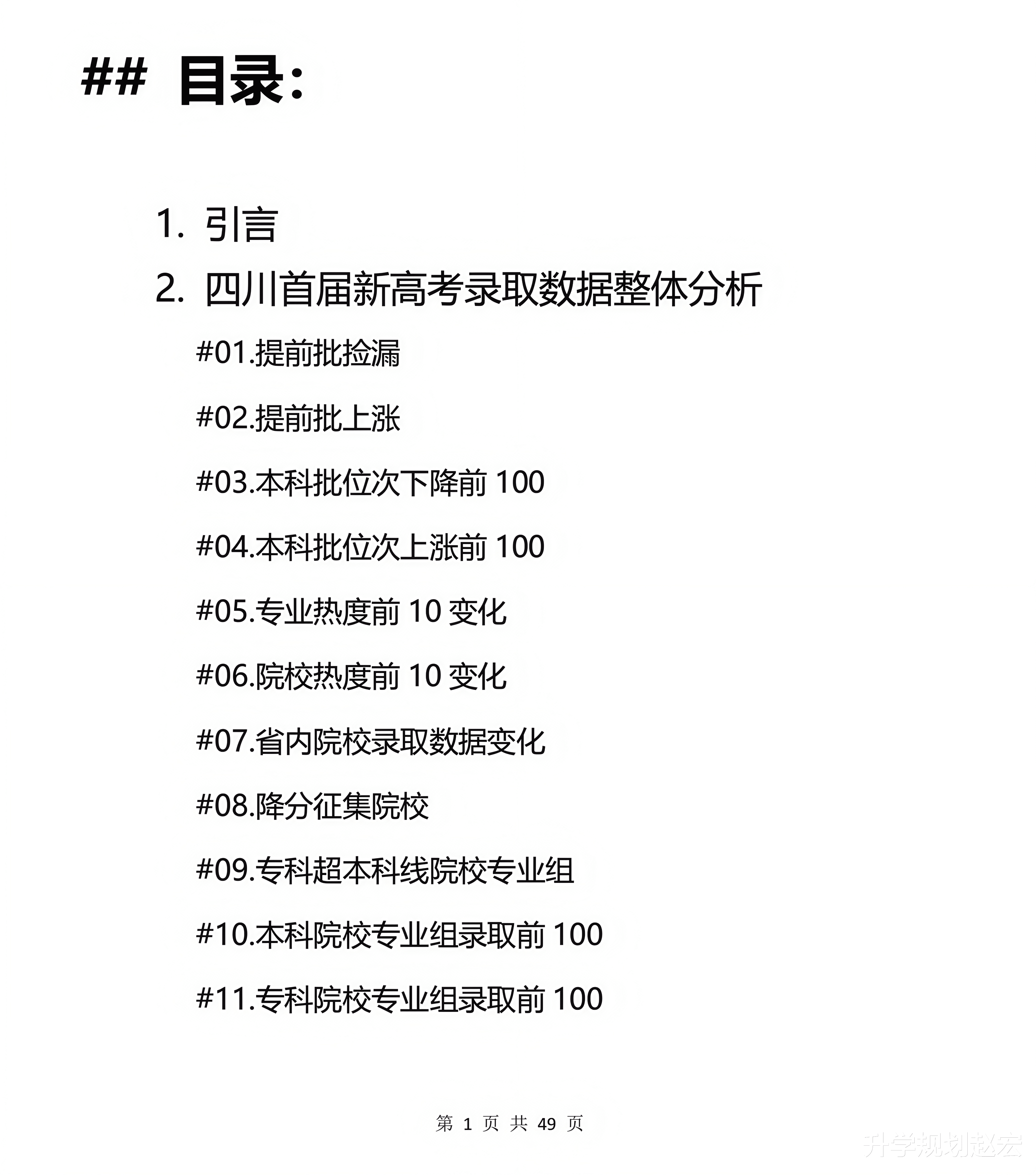 内容超级多,接下来咱们会用一系列的文章来分析,同样咱们也会去写完整的分析报告,这个报告会包含首届新高考录取数据整体分析,录取数据分类分析,录取总结以及对2026高考有什么影响和参考。整体分析大概会包含提前批捡漏、提前批上涨、本科批位次下降前100、本科批位次上涨前100、专业热度前10变化、院校热度前10变化、省内院校录取数据变化、降分征集院校、专科超本科线院校专业组、本科院校专业组录取前100和专科院校专业组录取前100等等。分类分析包含提前批军校警校、公费优师、航海类、五大官校、本科批985211、本科批行业院校、医学、师范、语言类、财经类、公办院校、民办院校、职业本科和省内院校录取数据等等。同样根据这个数据,对2026年高考有哪些可以参考的地方。