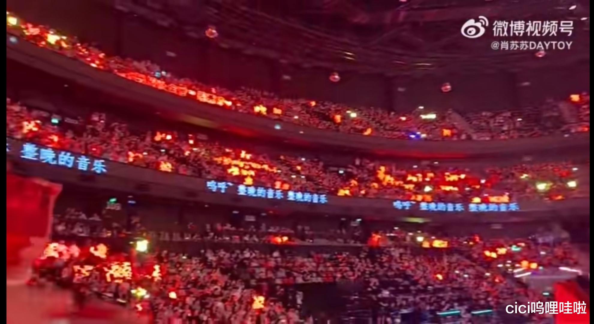 演出当晚,全场观众的目光时刻追随着肖战。他身着利落休闲西装登场,内搭别具一格,瞬间吸引众人目光。当熟悉的《整晚的音乐》旋律响起,现场气氛瞬间被点燃,观众们欢呼尖叫,手中红色荧光棒整齐挥舞,瞬间汇聚成一片红海。肖战全开麦演唱,歌声富有感染力,舞台上的他,举手投足间尽显自信与魅力,每一个舞步、每一次转身都恰到好处,将复古迪斯科曲风的慵懒与摇滚的炽热完美融合 ,带动着全场观众一起摇摆,把晚会变成了“万人迪厅”。