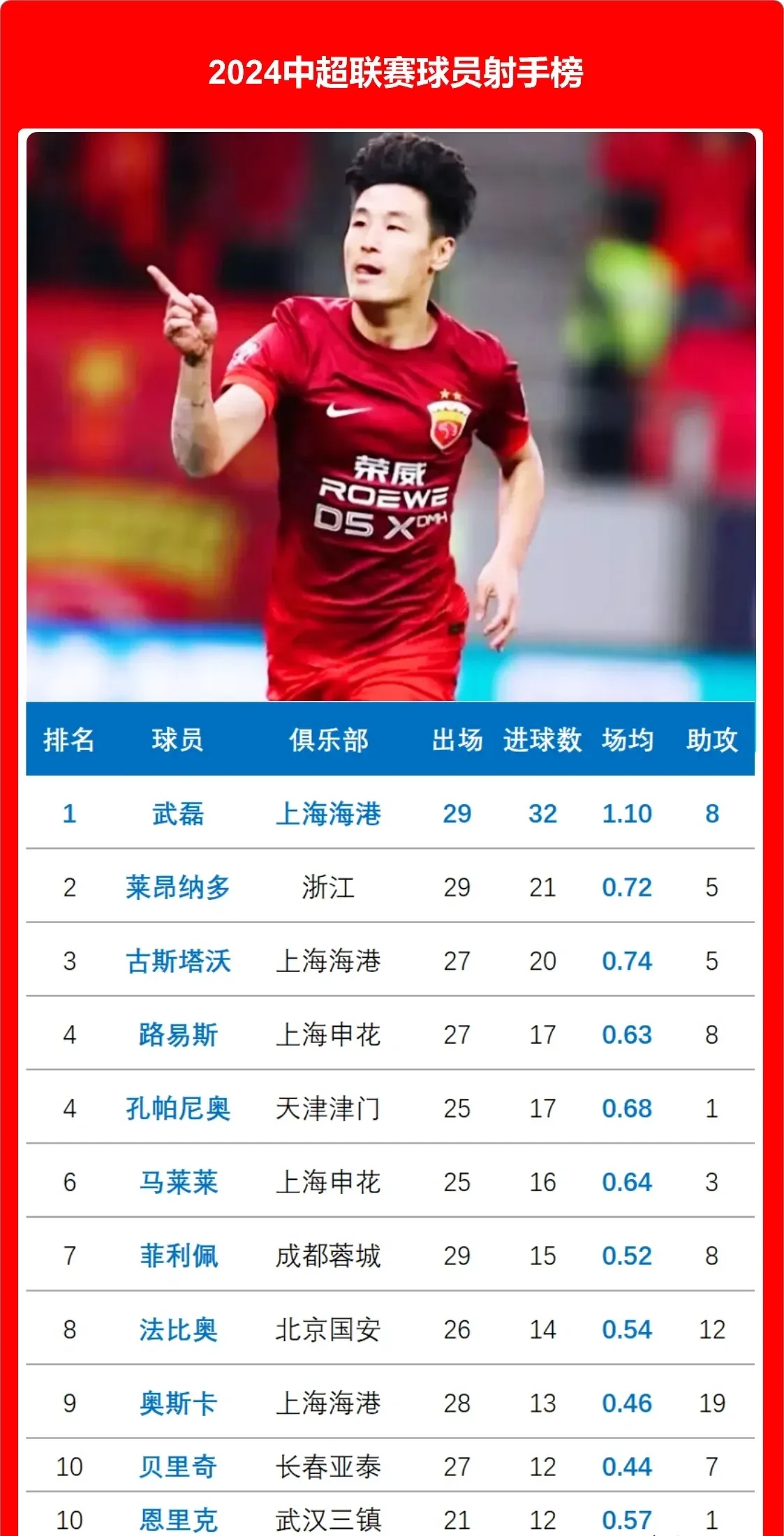 2. 唯一一个比外援进球还多的国内球员,一众老外都被他远远甩在身后,真是不可思议!