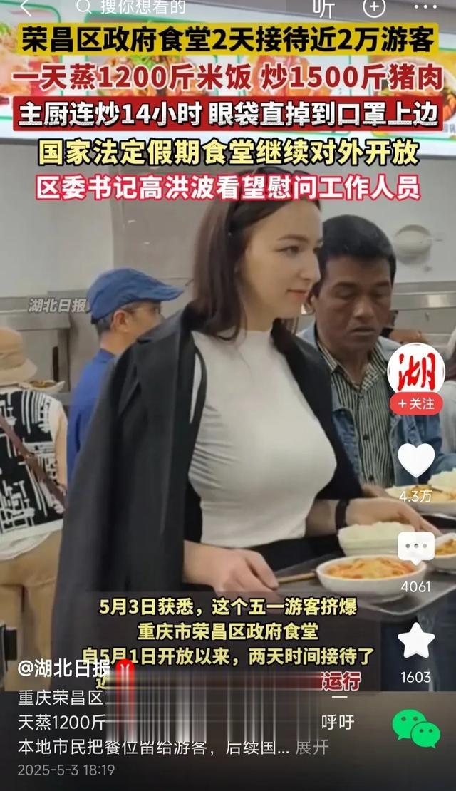 五一长假,泼天富贵降到荣昌,重庆荣昌可是赢麻了,车水马龙,人来人往,厨师已累到抡不起勺子了。