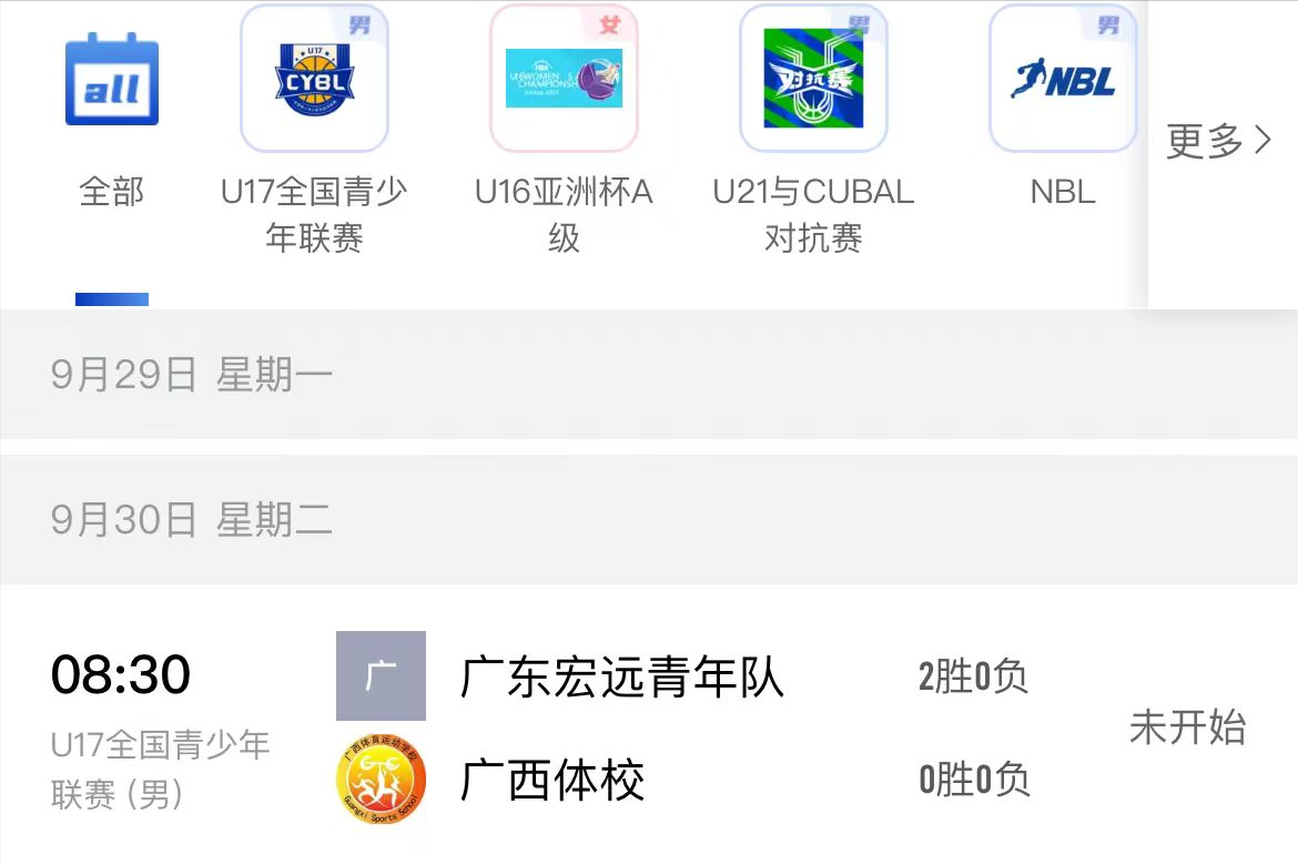 北京时间9月30日8点30分,广东宏远U17青年队第三场小组赛,将会对阵广西体校U17青年队。