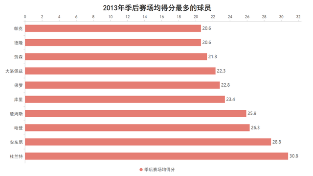 季后赛里杜兰特的场均得分提升到了30.8分也高居联盟第一,但雷霆本赛季季后赛在西部半决赛就被灰熊淘汰,不过这种失利却不能归咎于杜兰特个人的表现,如果说根本原因是雷霆的阵容导致进攻发起者过少,那么直接原因是哈登的离队与威少在首轮对阵火箭的比赛里受伤导致赛季报销,而上赛季的雷霆最具进攻威胁的就是哈登、威少与杜兰特三人,阵容的变化也令杜兰特被迫增多出场时间同时遭遇更严密的防守也无人能为他分担。