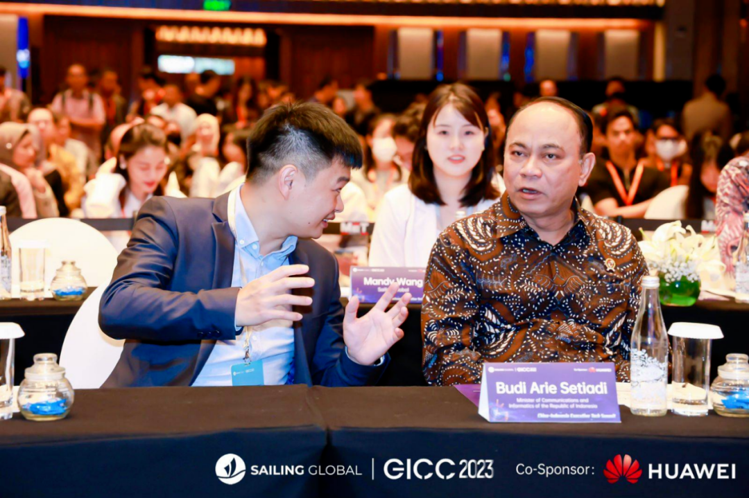 (扬帆出海 CEO 刘武华与印尼通信部部长Budi Arie Setiadi热切交流)