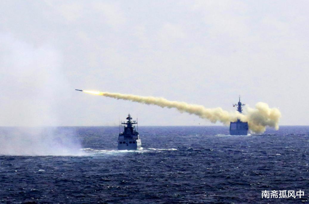 舰艇旁边,突然炸起几十米高的水墙。