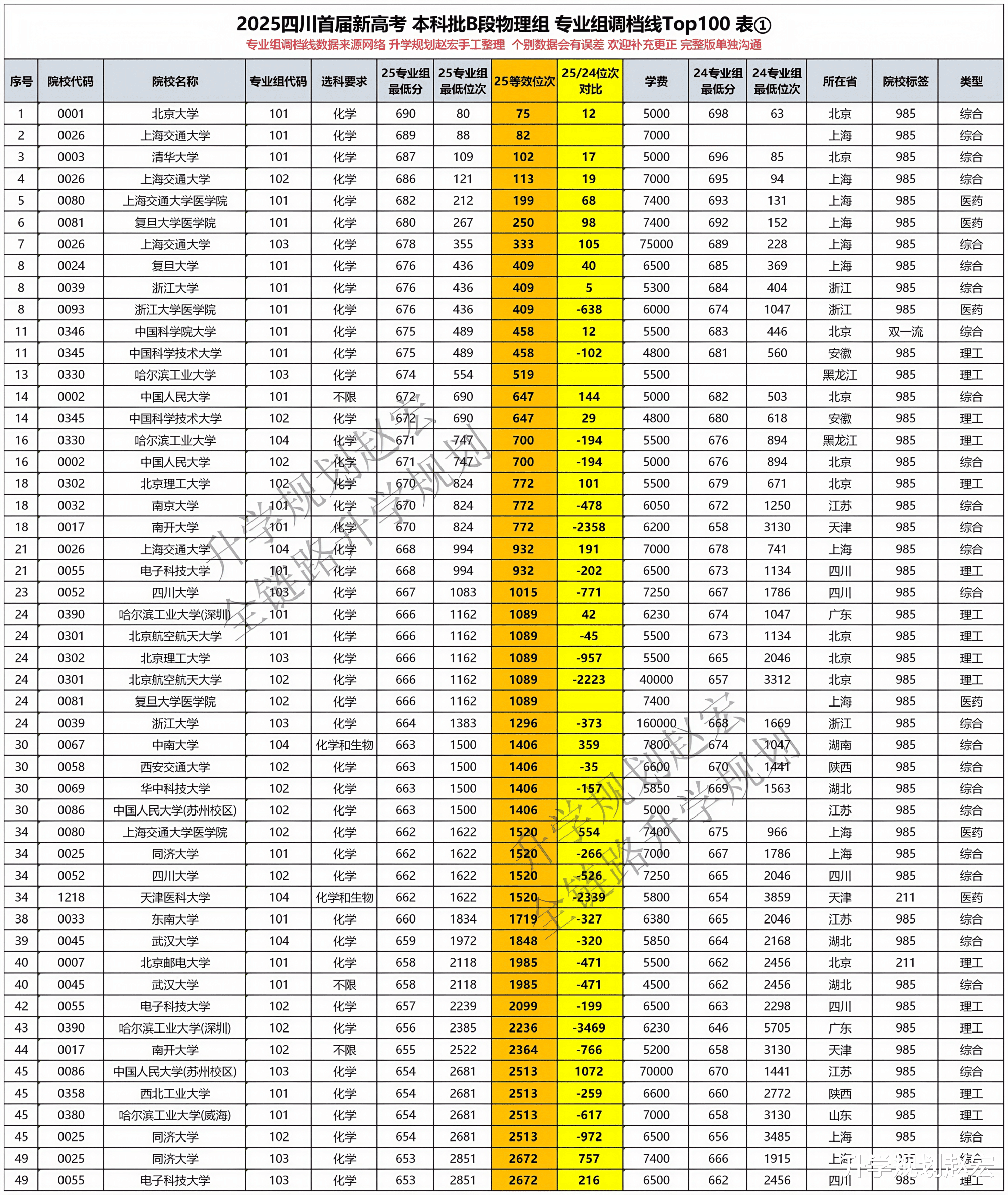 川美102组涨12万名,沈医101组涨11.7万名,桂电102组涨4万名,2025四川新高考录取数据来了