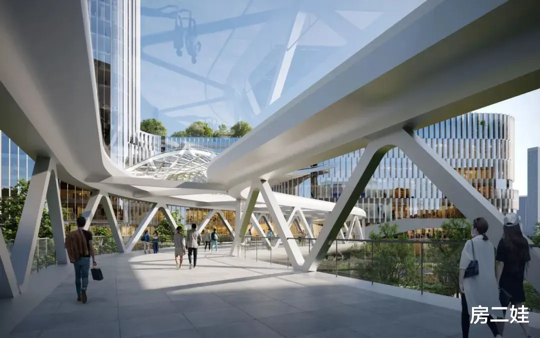另一个,则是通过空中连廊进行连接。具体效果图,如下所示: