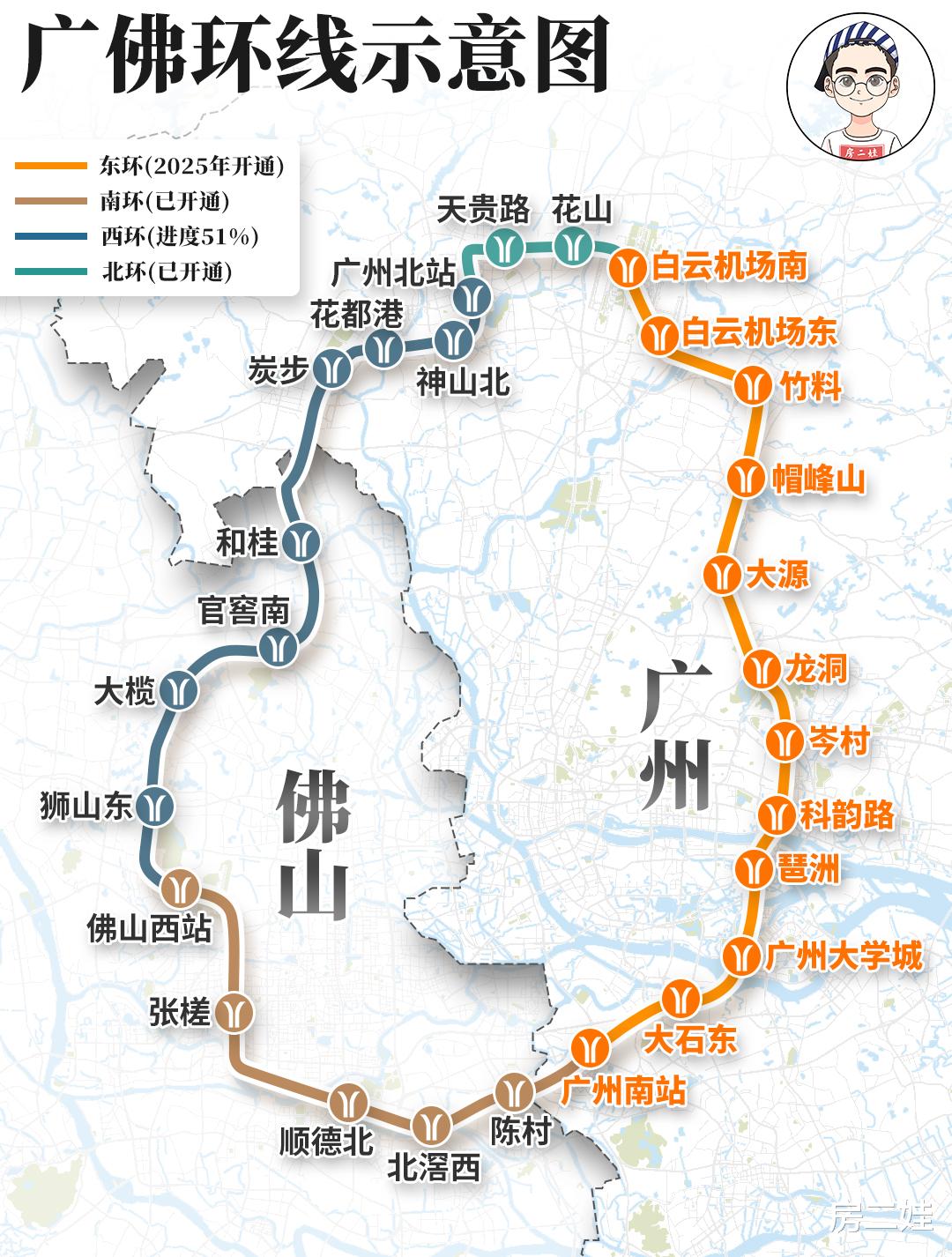 因为,今年国庆前后,广佛环线(东线)将正式开通。届时,天河及黄埔业主去广州南站以及白云机场,将变得无比便捷。不需要坐5号线再换3号线了!