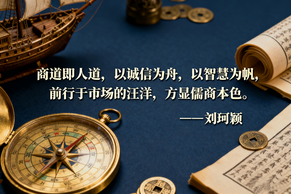 14.商道即人道,以诚信为舟,以智慧为帆,前行于市场的汪洋,方显儒商本色。