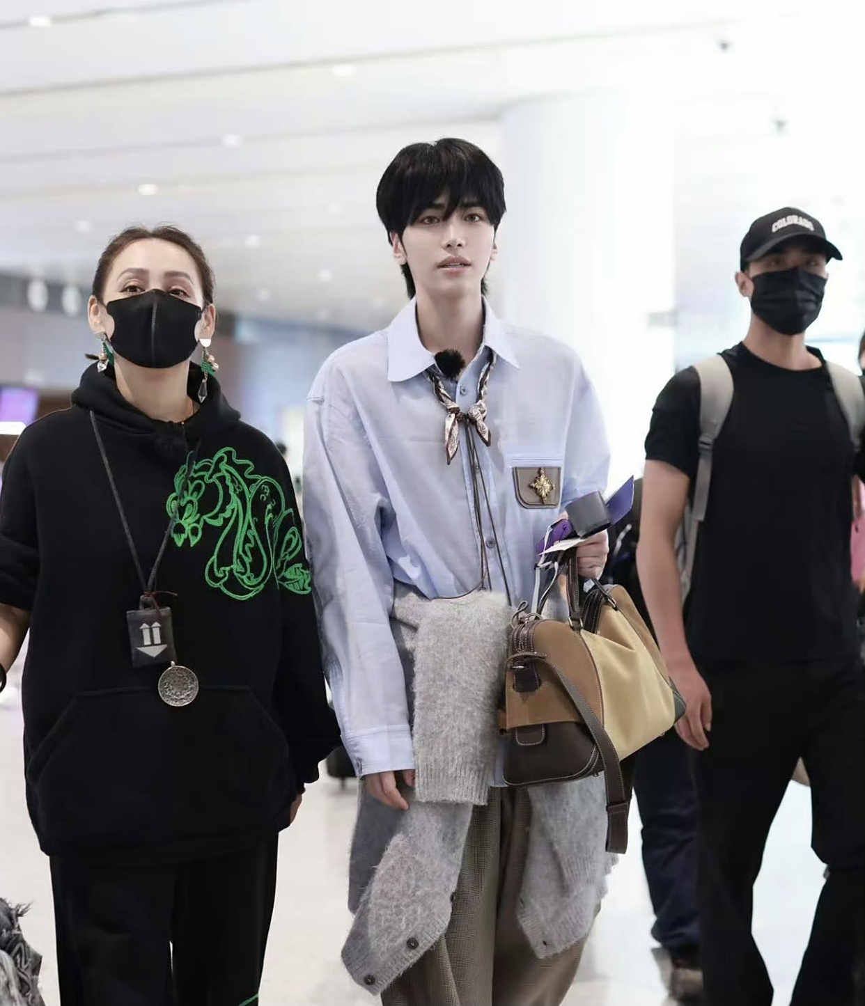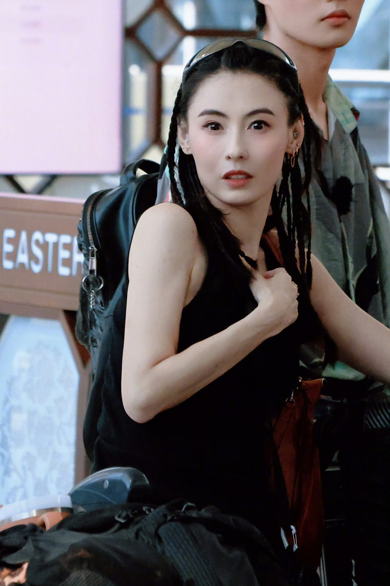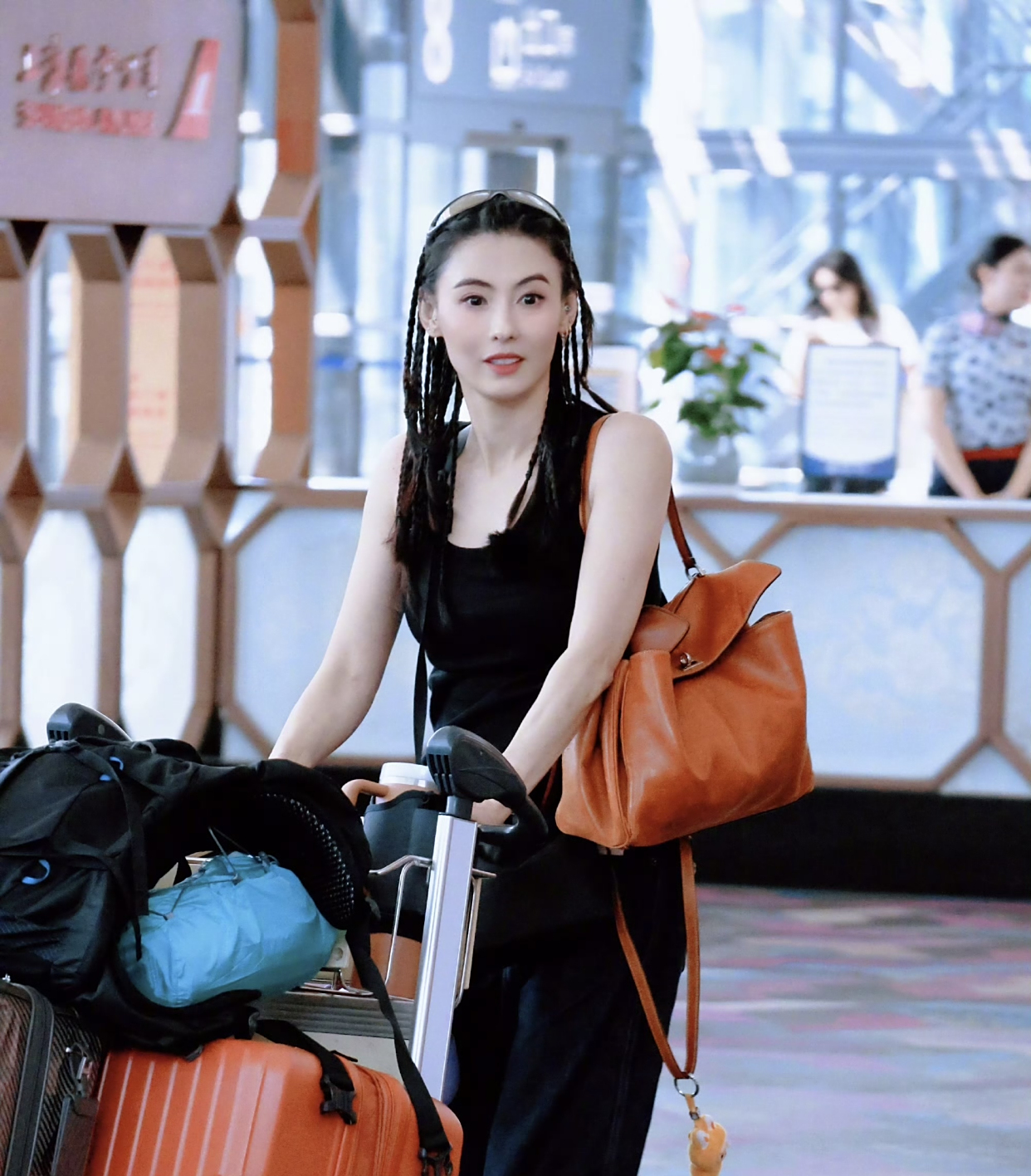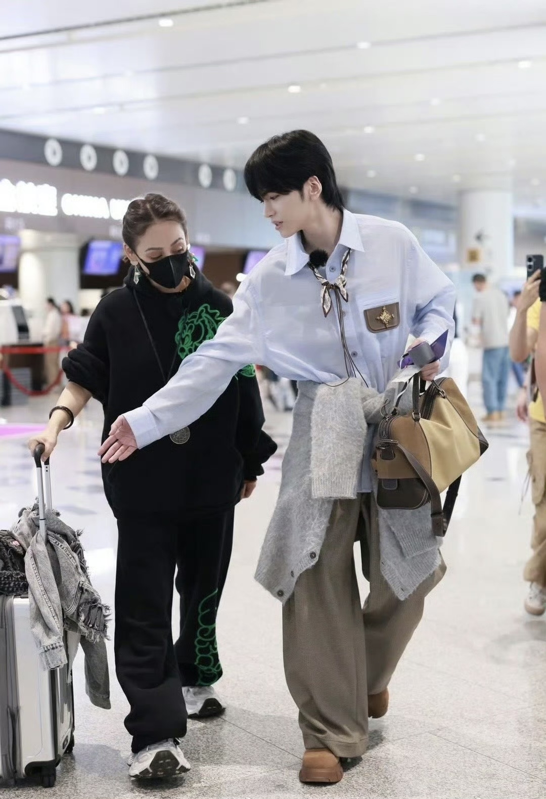 路透中的宁静一身一身全黑,单手插兜,单手推行李箱看起来真的太酷了。