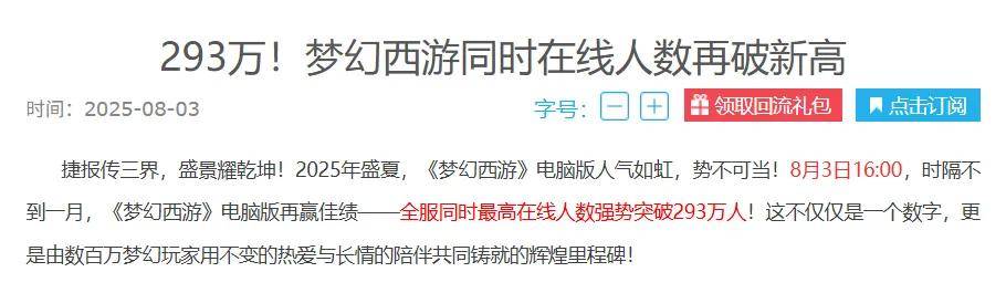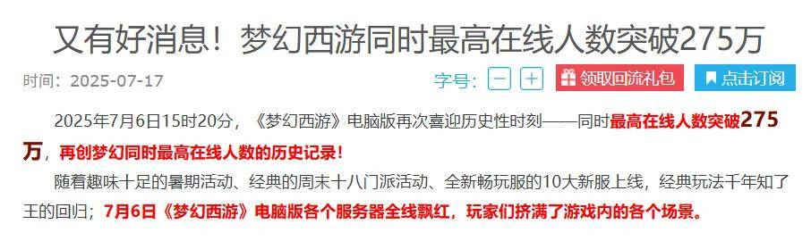 “《梦幻西游》真的有极限吗?什么时候游戏同时在线人数记录这么好破了?”