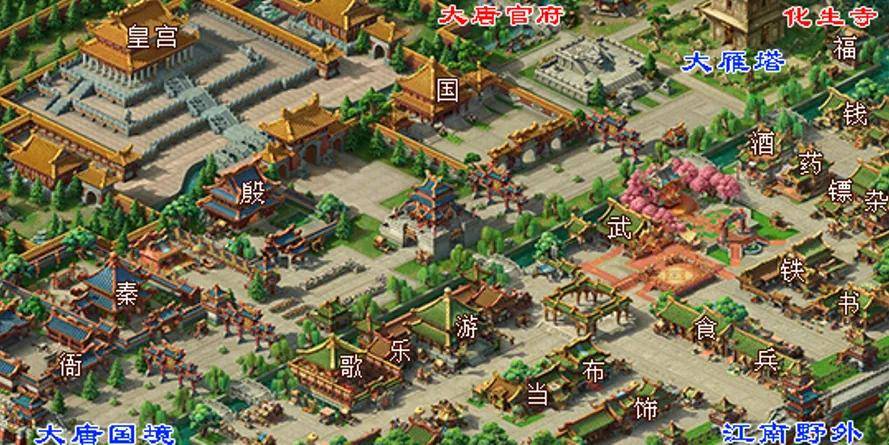 同样,在地图场景的设计上,《梦幻西游》电脑版也有着不少门道和巧思。例如游戏内“长安城”这一张经典地图,其城池道路规划和商铺布局都大有讲究。