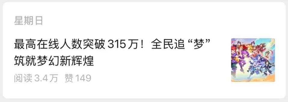7月的275万令人震惊,8月的293万让人震撼与惋惜,想着就差那么一点就破300万。而刚刚进入9月,《梦幻西游》电脑版就以315万的惊人成绩,攀上新的百万里程碑,仿佛没有边界般持续刷新着行业与玩家的震撼阈值。